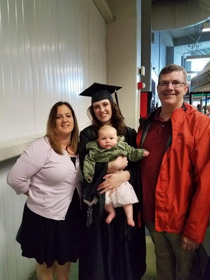 Our son Bob,our daughter Becca holding our granddaughter Nevaeh ,my husband Tom and myself. Celebrating Bob’s high school graduation. Our son has a bright future ahead of him in the culinary arts. He is a kind and loving person. Our daughter Becca is a wonderful mother, has a beautiful voice and she makes us very proud. My husband is my rock and is my everything. The love of my life who supports me in every way.