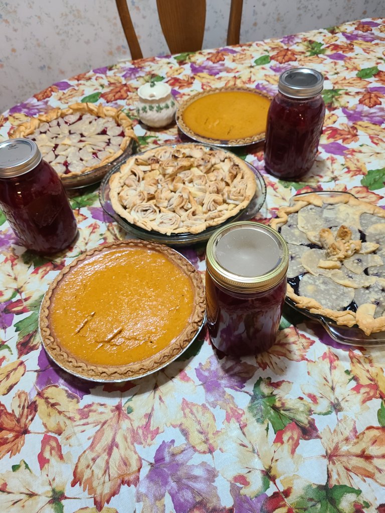 My favorite holiday is Thanksgiving and it is a day that we have so much to be thankful for. I always take a mini vacation to prepare some food items ahead of time. Yesterday was pie day, it is an 6am start. So much of unwrapping packaged containers of spices, cherries,blue berries and other assorted items for pie day. It sure is a lot of work, but it is all about the love of our family and friends.