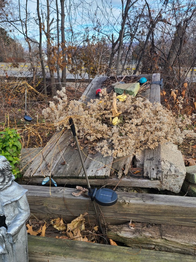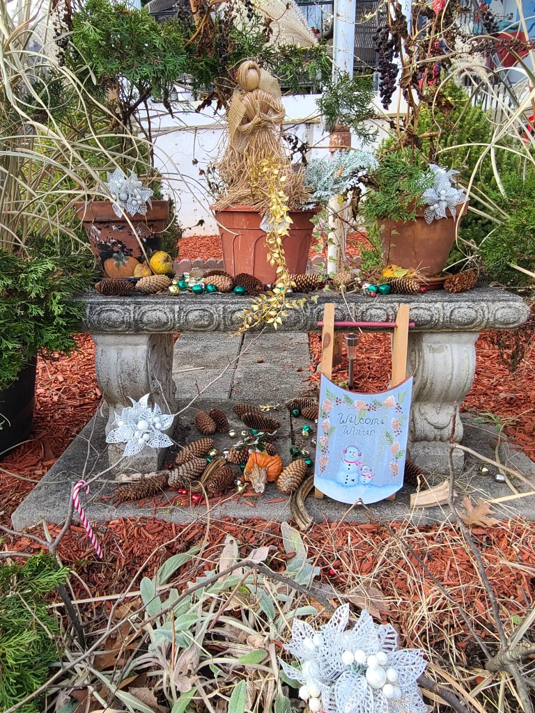 Today was a beautiful day to work in the garden for the last time this year. Although the garden beds have been tucked in for another pending winter. Some of our plants that once thrived are now being repurposed for outdoor Christmas decorations. Saw grass makes for great natural plumage in our large whiskey barrel planters. Juniper and Quince branches make nice additions to the flower pit. Pine cones and dried elderberry also add decorative touches. I find myself more attracted to repurposing what is in our own backyard or currently in the attic rather than buying more stuff. https://weeklyprompts.com/2023/11/25/weekly-prompts-weekend-challenge-finale/