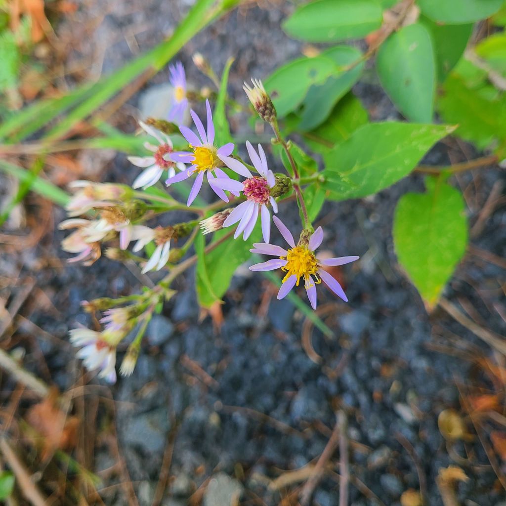 Late summer still shows her colors, even in  places you least expect.  I took these photos in the parking lot at work. These delicate flowers of white and lilac colors go unnoticed while co-workers  park  their cars.